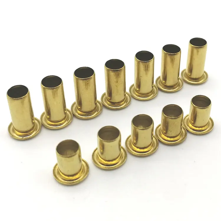 I rivetti per occhielli possono essere placcati con nichel bianco, stagno lucido, imitazione oro, bronzo antico, nichel opaco, bronzo, zinco e argento. Offriamo un'ampia varietà di stili e una gamma completa di rivetti per occhielli di precisione e rispettosi dell'ambiente. Possiamo personalizzarli in base al campione o al disegno. Le tolleranze standard per i rivetti per gli occhielli sono: ± 0,05 mm per il diametro del tubo, ± 0,1 mm per altezza e ± 0,15 mm per il diametro del cappuccio. Possiamo anche produrre le specifiche dei singoli clienti.