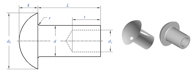 Rivetti semitubolari a testa tonda