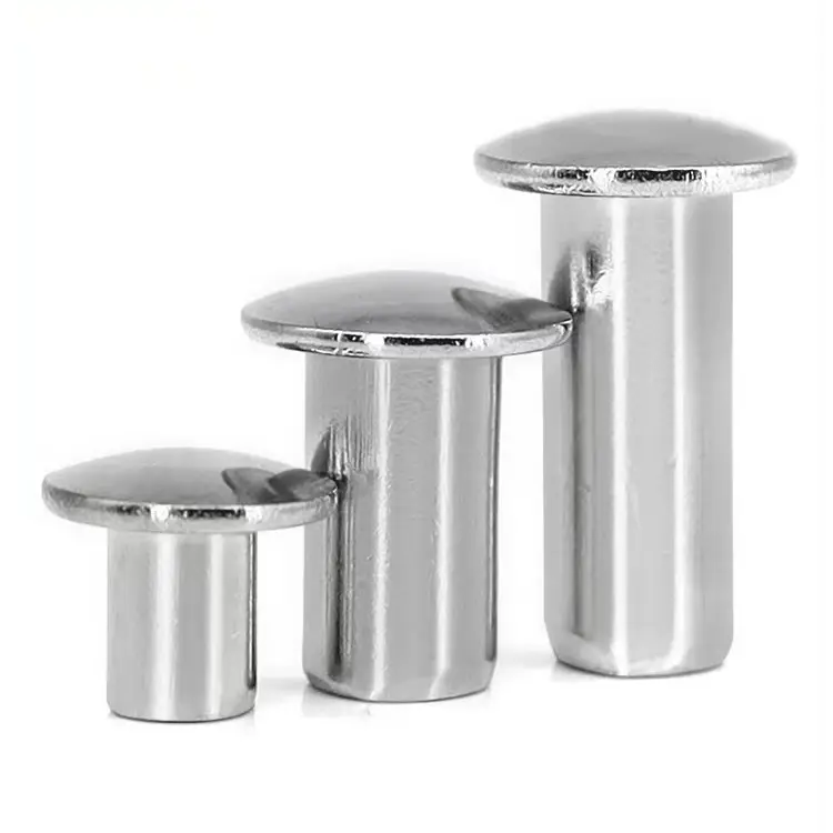 Rivetti solidi con testa in padella Di solito utilizzato per unire due o diverse parti insieme, fornisce un'articolazione molto forte. I rivetti per la testa sono spesso utilizzati in lavori strutturali pesanti in cui la forza del rivetto è molto importante.