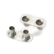 | Occhielli a gradino | Ha due "gradini" o diametri distinti lungo la canna: largo nella parte superiore, stretto nella parte inferiore. | Montaggio attraverso materiali in cui la dimensione del foro deve essere diversa su ciascun lato (come pelle spessa su tessuto sottile o attraverso un circuito stampato). |