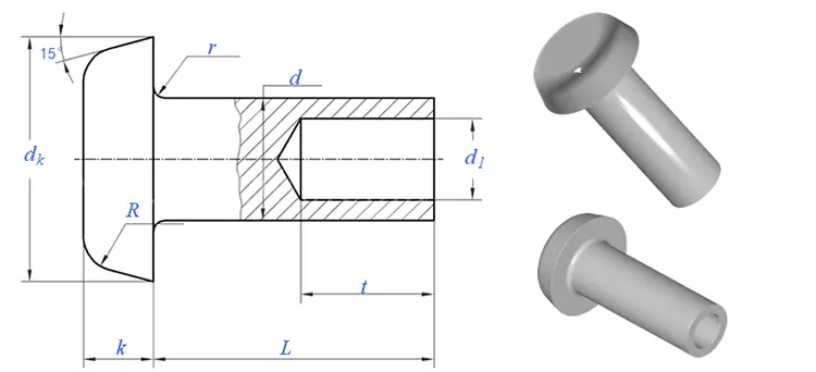 I rivetti semi-tubolari della testa universale sono generalmente su misura per il disegno del cliente, il materiale può essere in alluminio, acciaio, acciaio inossidabile, ottone, rame ecc.